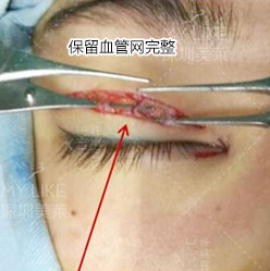 采用上睑提肌固定技术,保留睑板前组织,大大减少上睑毛细血管网、静脉回流系统及淋巴管丛的破坏。