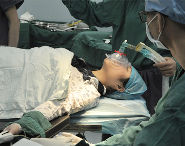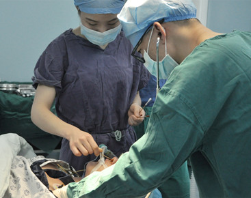 4.麻醉医生为熟睡中的求美者插入气管导管,控制呼吸以保持充足氧供。